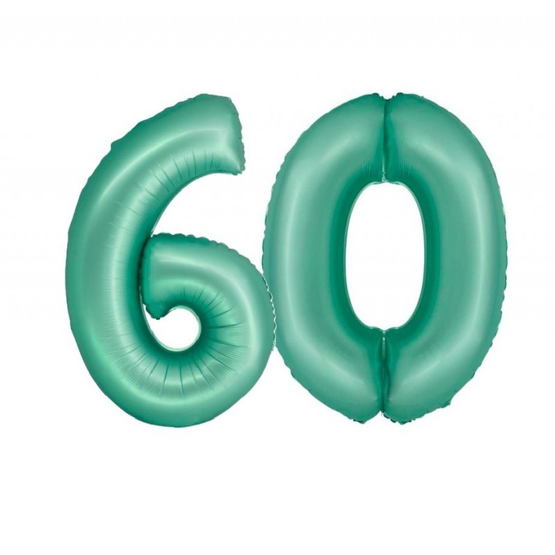 Balony foliowe w kształcie 60 w kolorze miętowym.