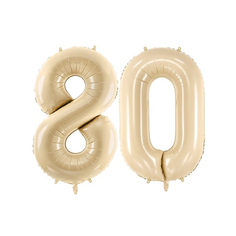 Balony foliowe w kształcie 80 w kolorze beżowym.
