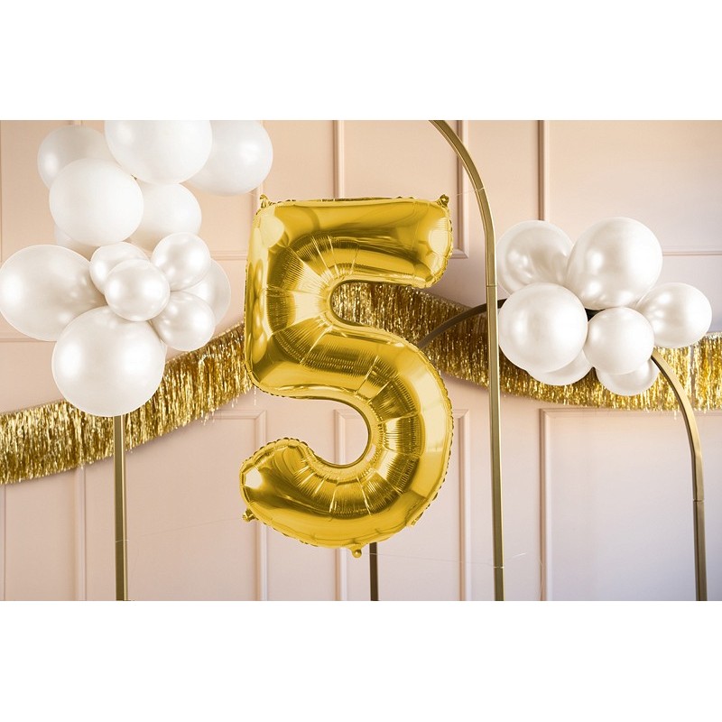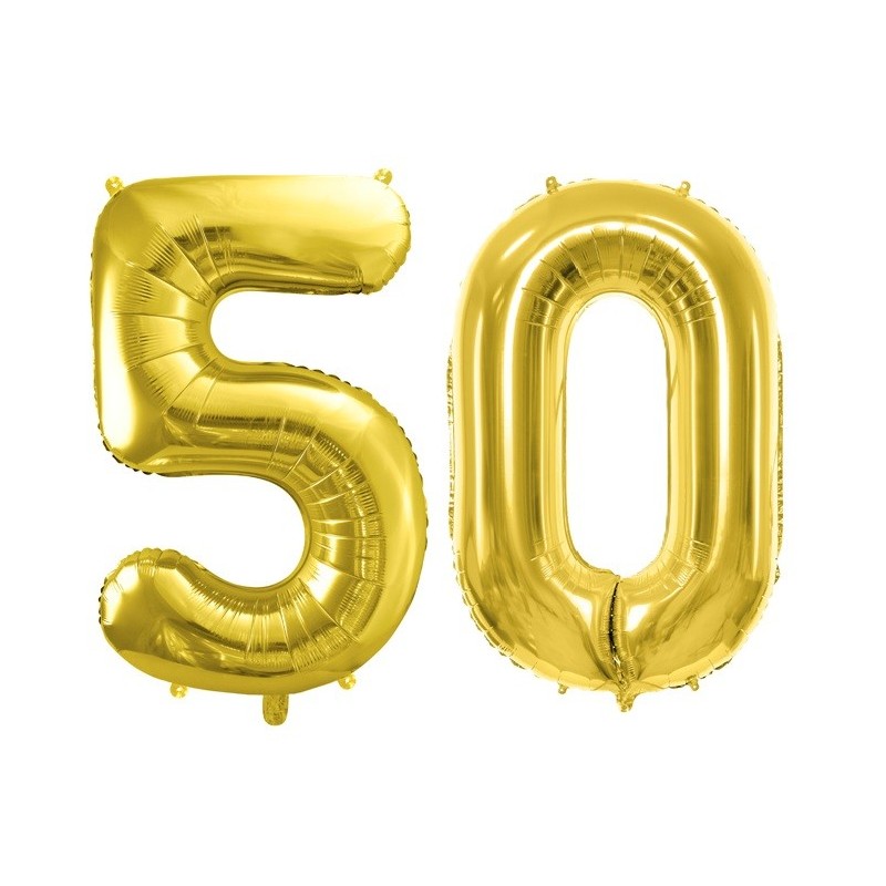 Balony foliowe w kształcie 50 w kolorze jasnozłotym.
