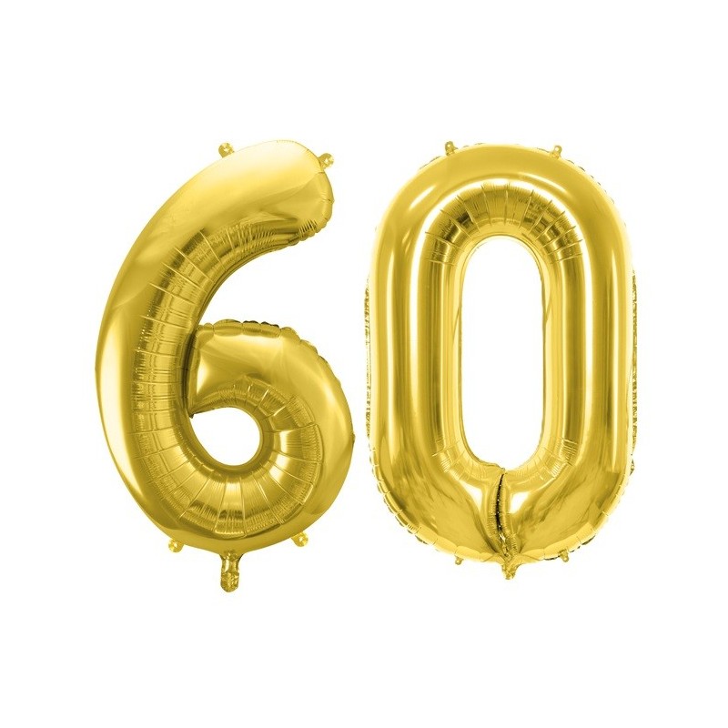 Balony foliowe w kształcie 60 w kolorze jasnozłotym.