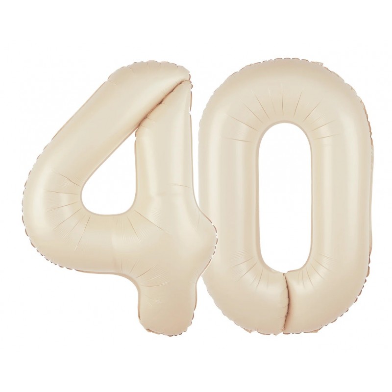 Balony foliowe w kształcie 40 w kolorze kremowym.