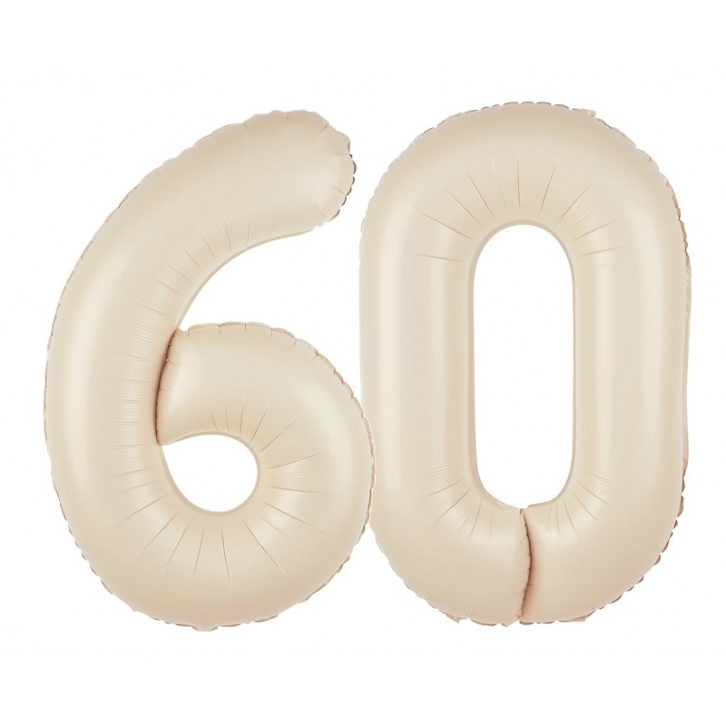 Balony foliowe w kształcie 60 w kolorze kremowym.
