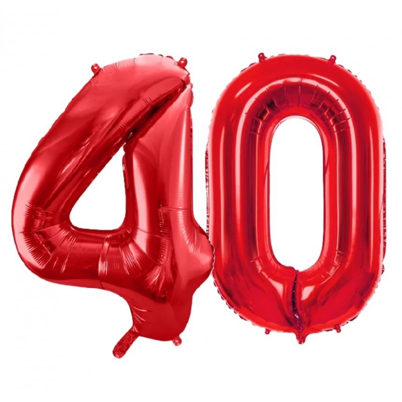 Balony foliowe w kształcie 40 w kolorze czerwonym.