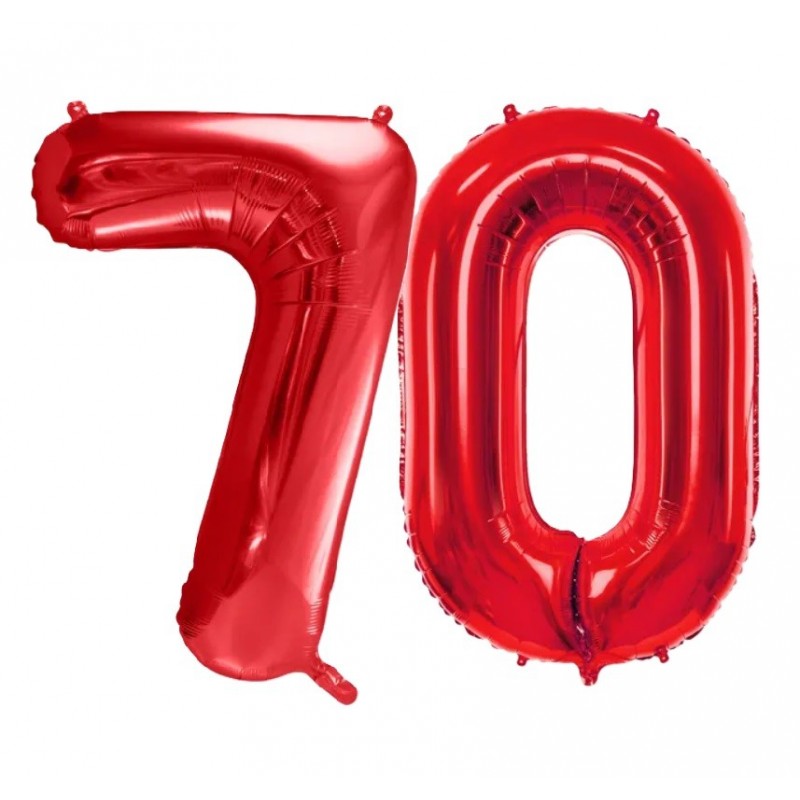 Balony foliowe w kształcie 70 w kolorze czerwonym.