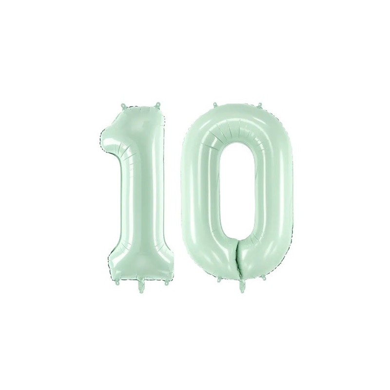 Balony foliowe w kształcie 10 w kolorze zielonym.