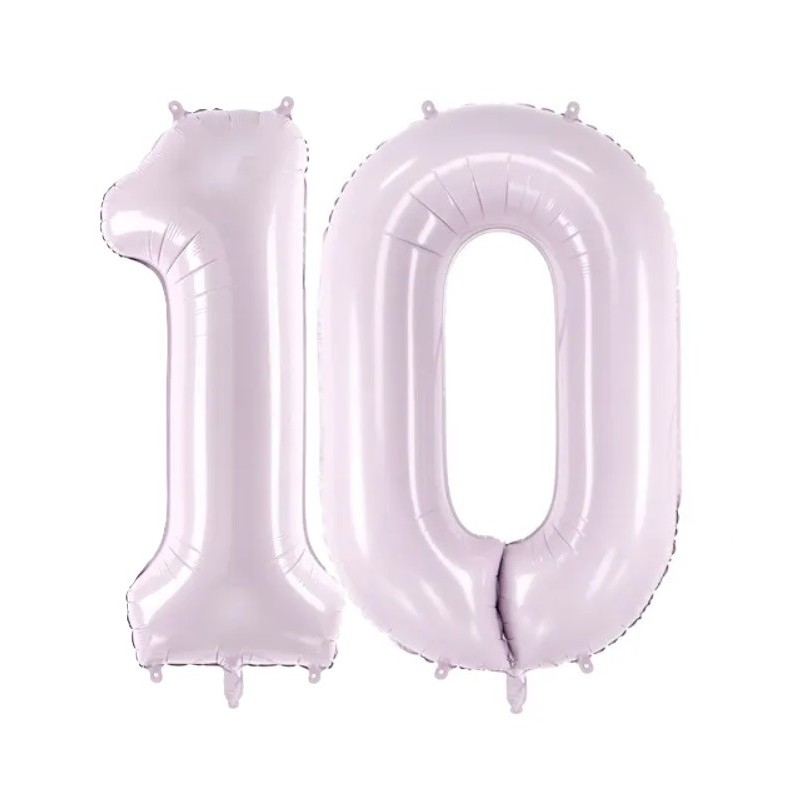 Balony foliowe w kształcie 10 w kolorze fioletowym.