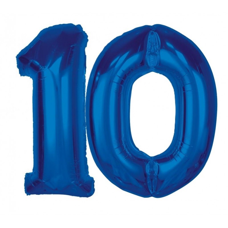 Balony foliowe w kształcie 10 w kolorze niebieskim.