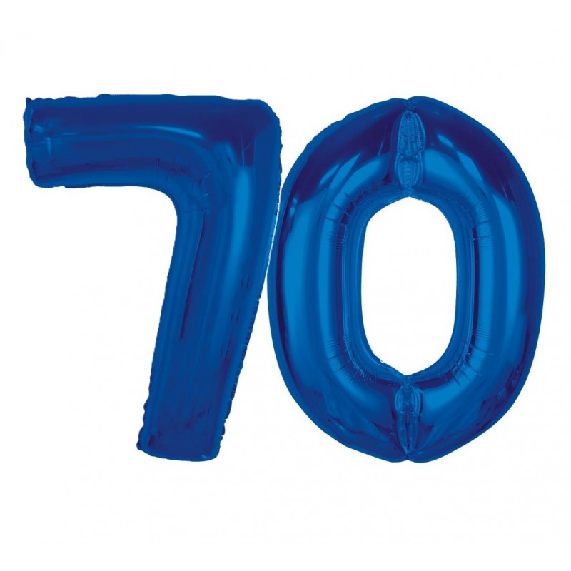 Balony foliowe w kształcie 70 w kolorze niebieskim.