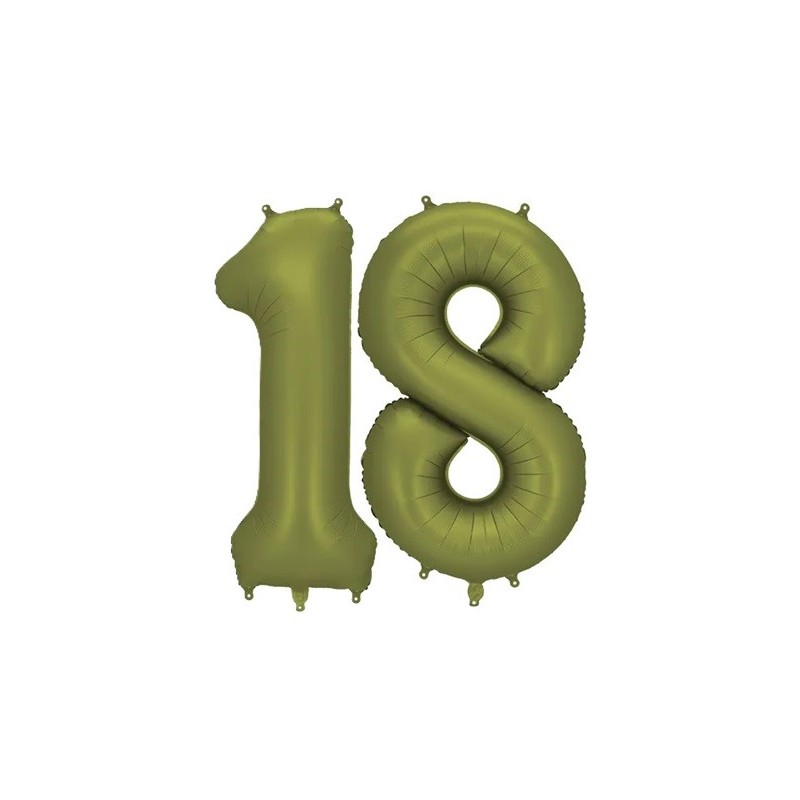 Balony foliowe Cyfra 18 - 86 cm - Oliwkowe matowe