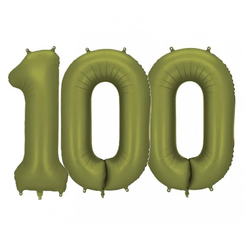 Balony foliowe w kształcie 100 w kolorze oliwkowym.