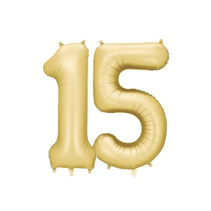 ⭐Balony foliowe Cyfra 15 - 86 cm - Złote satynowe⭐