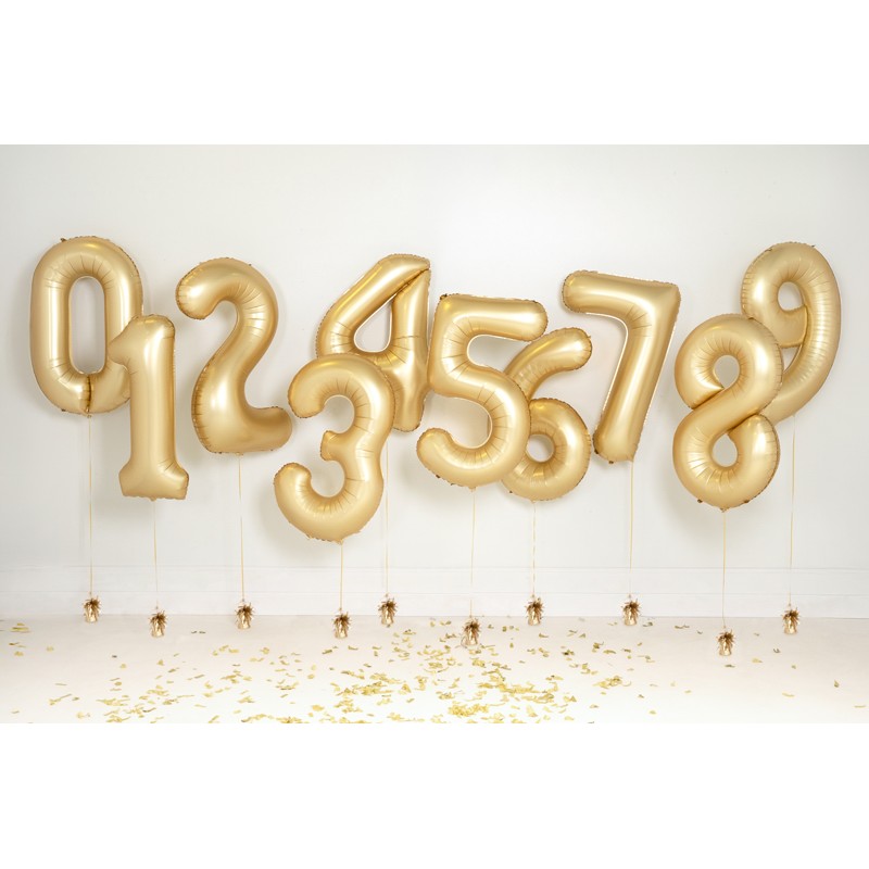 Balony foliowe w kształcie 35 w kolorze złotym satynowym.