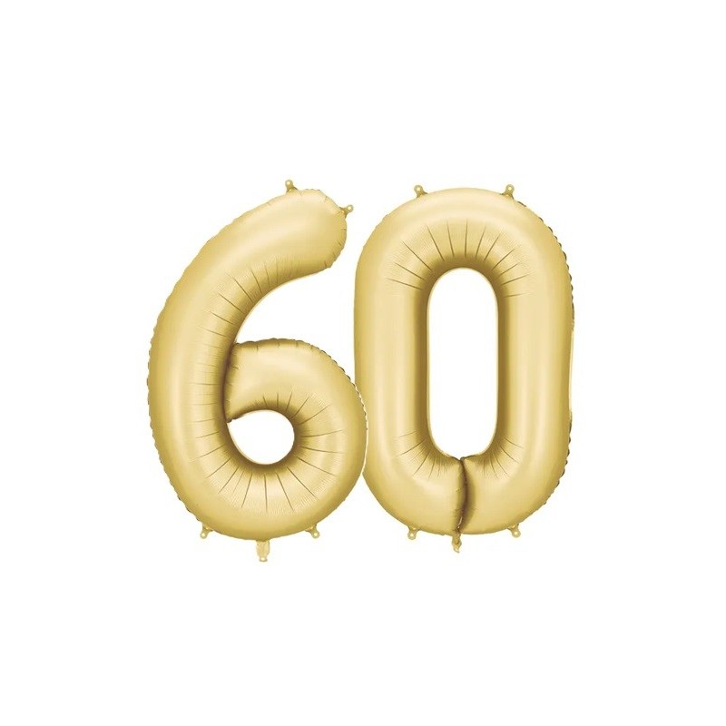 Balony foliowe w kształcie 60 w kolorze złotym satynowym.