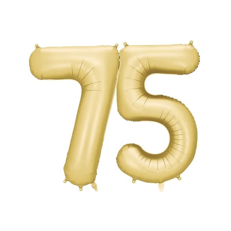 Balony foliowe w kształcie 75 w kolorze złotym satynowym.