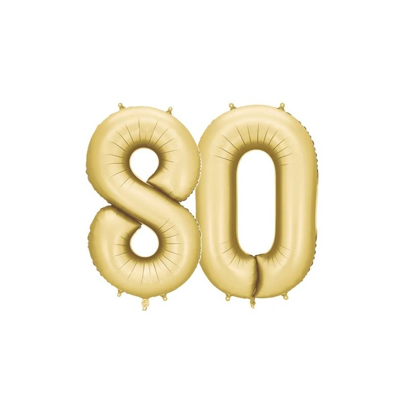 Balony foliowe w kształcie 80 w kolorze złotym satynowym.