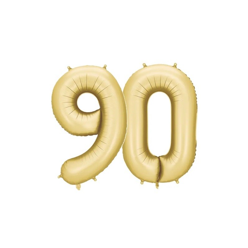 Balony foliowe w kształcie 90 w kolorze złotym satynowym.