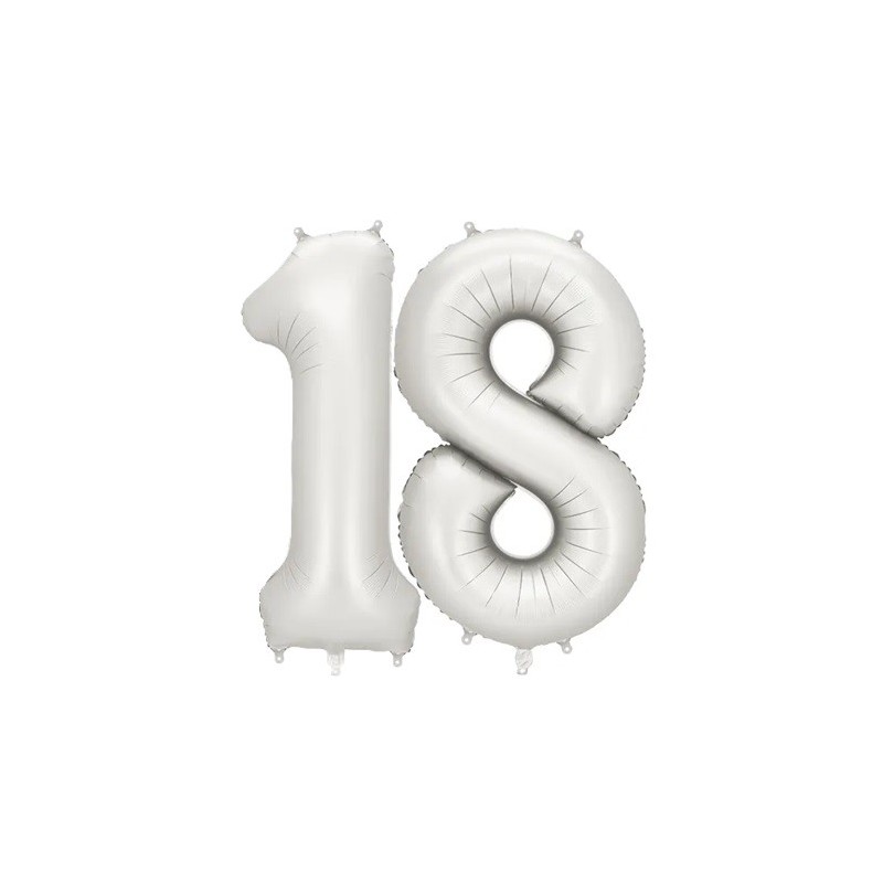 Balony foliowe Cyfra 18 - 86 cm - Srebrne satynowe