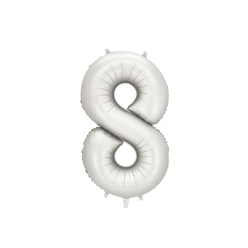 Balony foliowe w kształcie 18 w kolorze srebrnym satynowym.