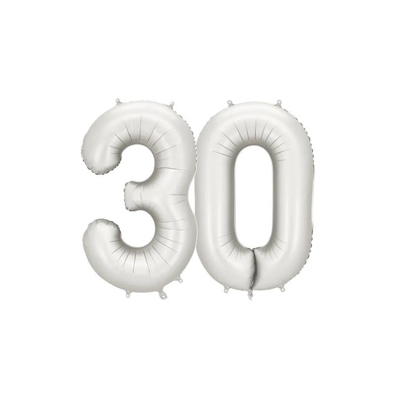Balony foliowe Cyfra 30 - 86 cm - Srebrne satynowe