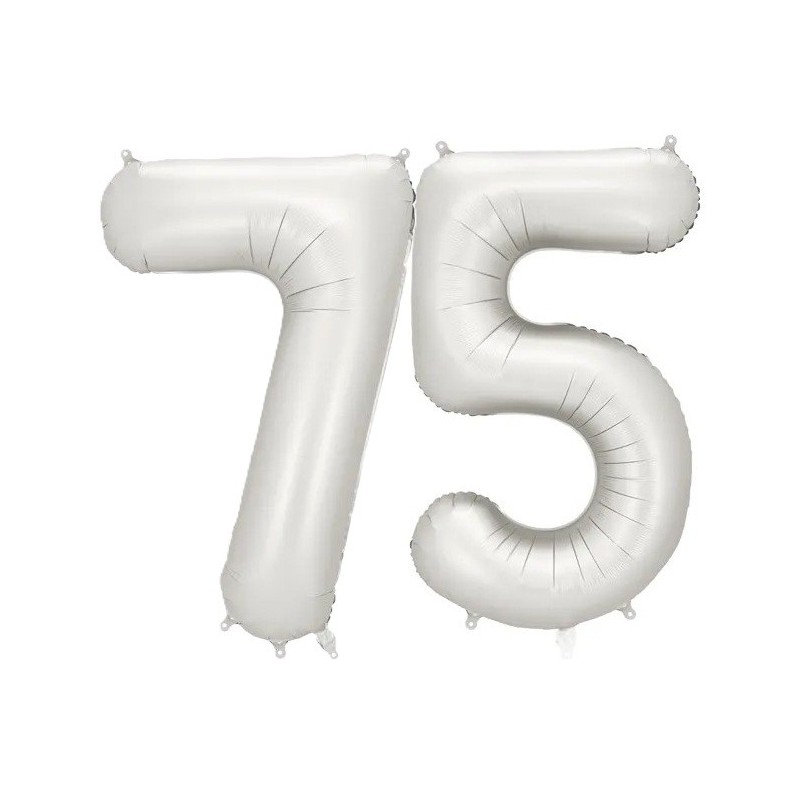 Balony foliowe w kształcie 75 w kolorze srebrnym satynowym.