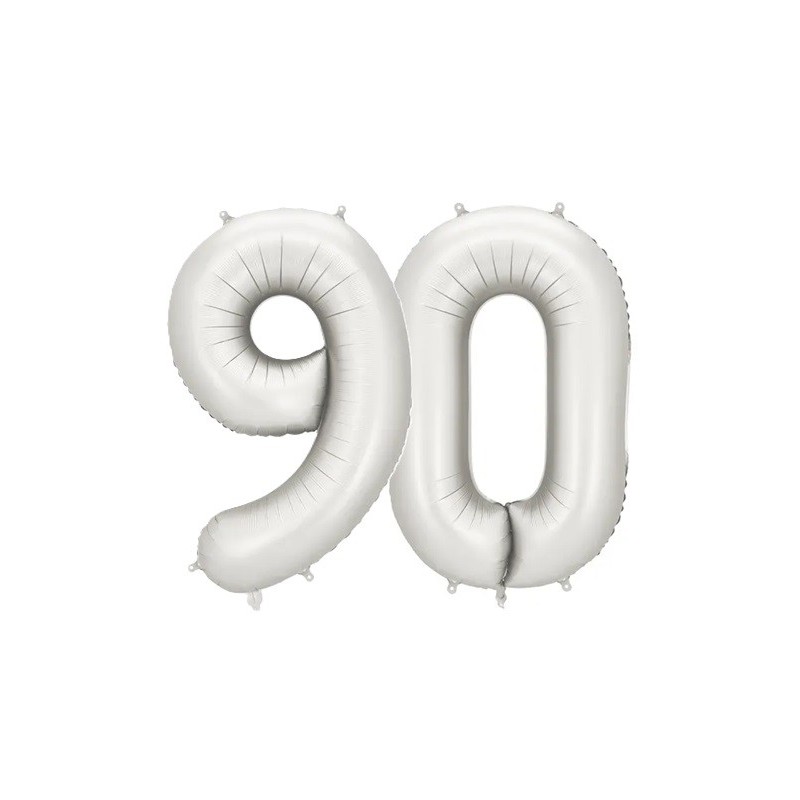 Balony foliowe Cyfra 90 - 86 cm - Srebrne satynowe