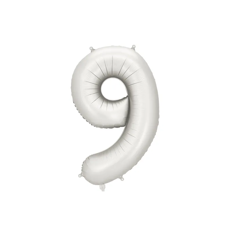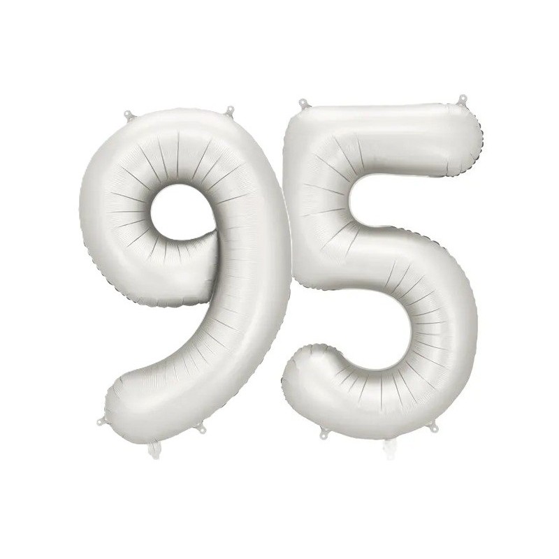 Balony foliowe w kształcie 95 w kolorze srebrnym satynowym.
