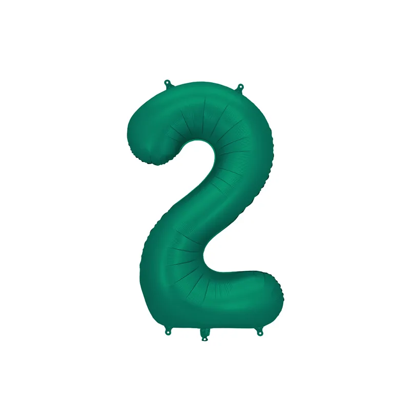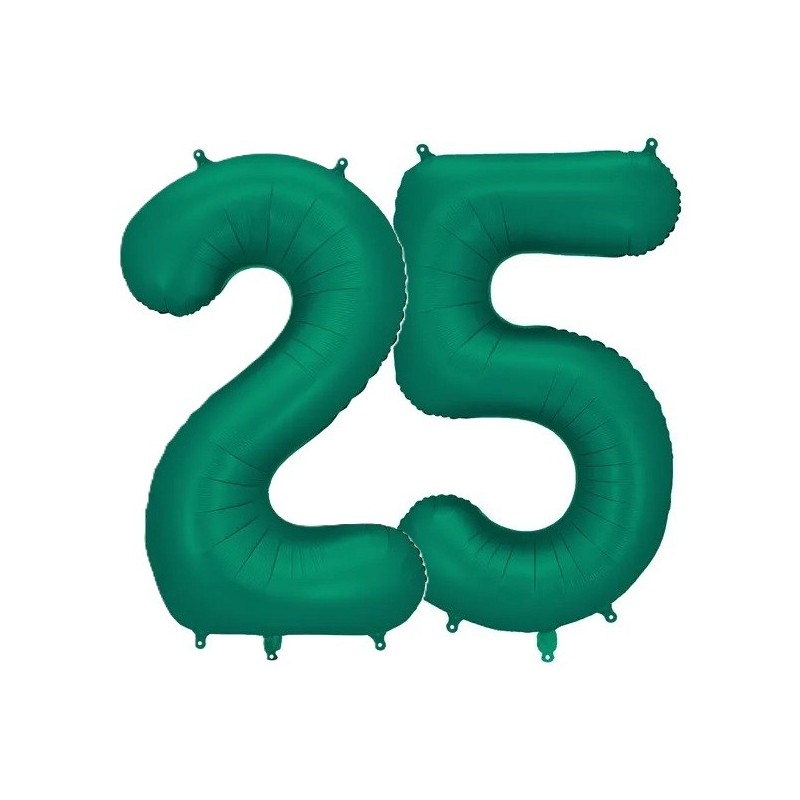 Balony foliowe w kształcie 25 w kolorze butelkowej zieleni.