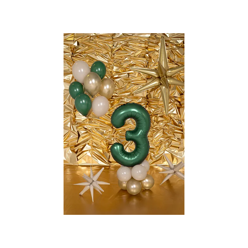Balony foliowe w kształcie 35 w kolorze butelkowej zieleni.
