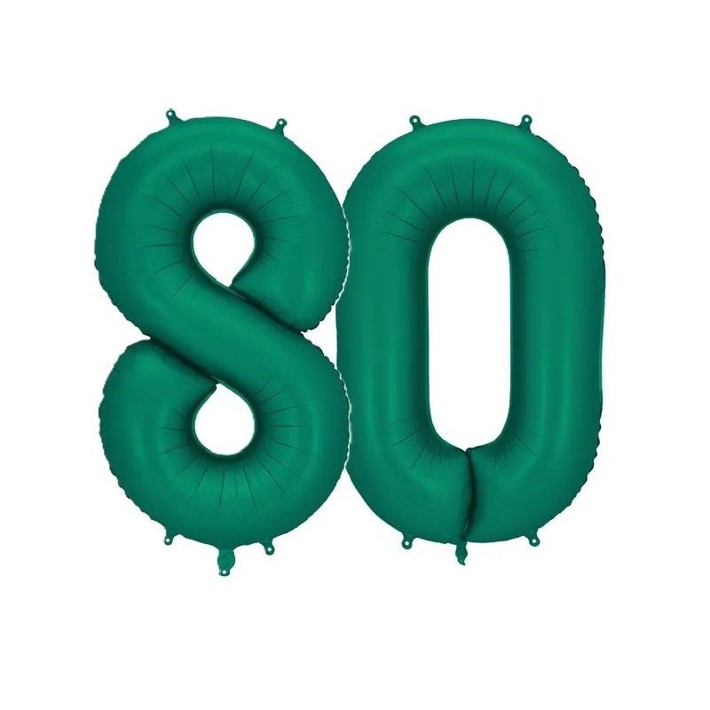 Balony foliowe w kształcie 80 w kolorze butelkowej zieleni.