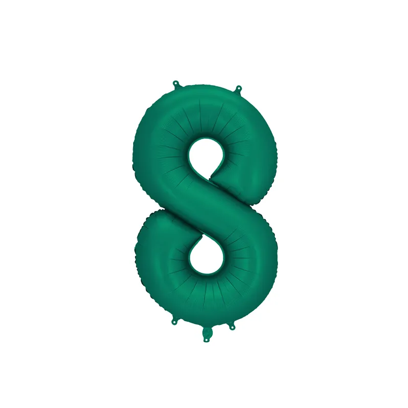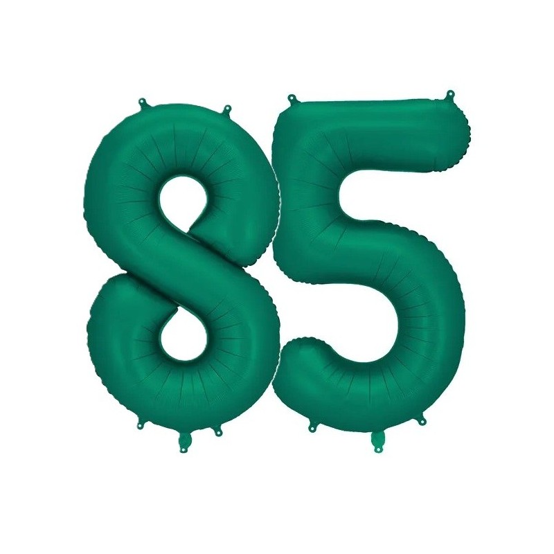Balony foliowe w kształcie 85 w kolorze butelkowej zieleni.
