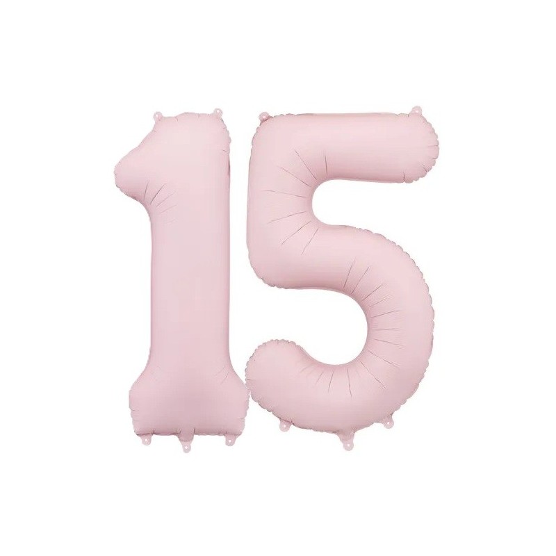 Balony foliowe Cyfra 15 - 86 cm - Jasny różowy matowy
