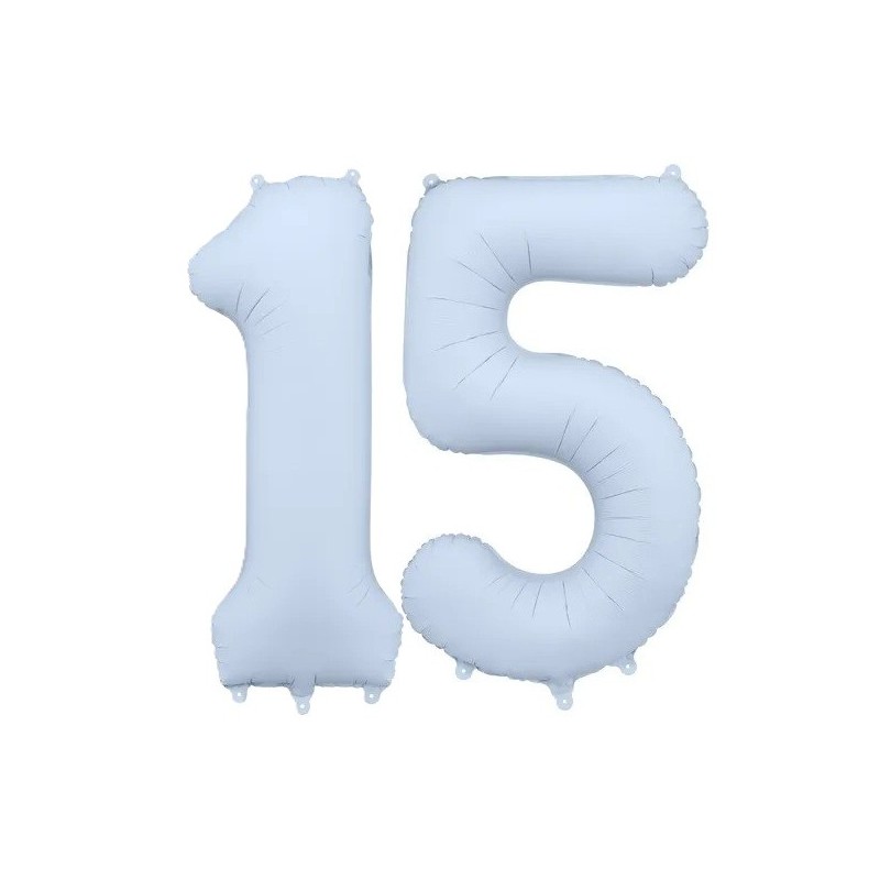 Balony foliowe Cyfra 15 - 86 cm - Mglisty niebieski matowy