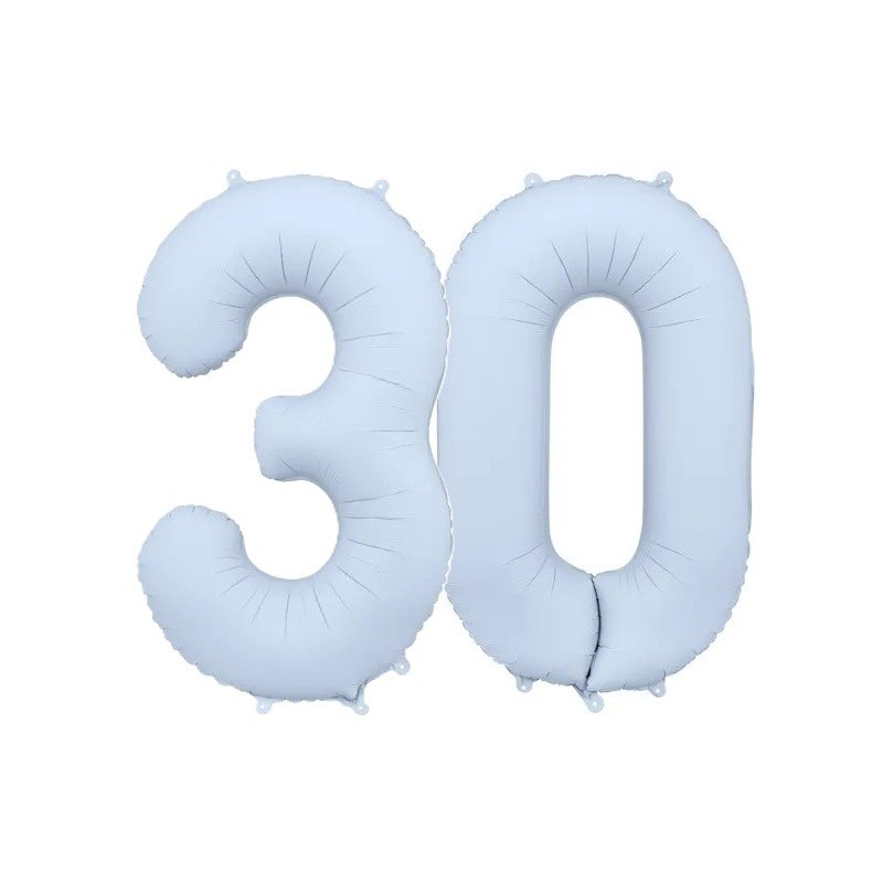 Balony foliowe Cyfra 30 - 86 cm - Mglisty niebieski matowy
