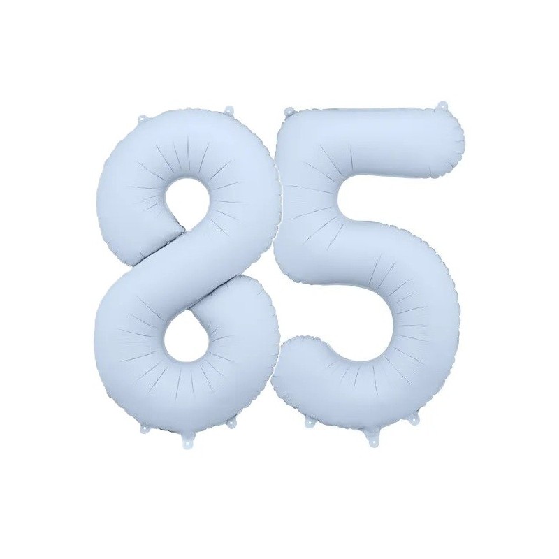 Balony foliowe w kształcie 85 w kolorze mglistym niebieskim.