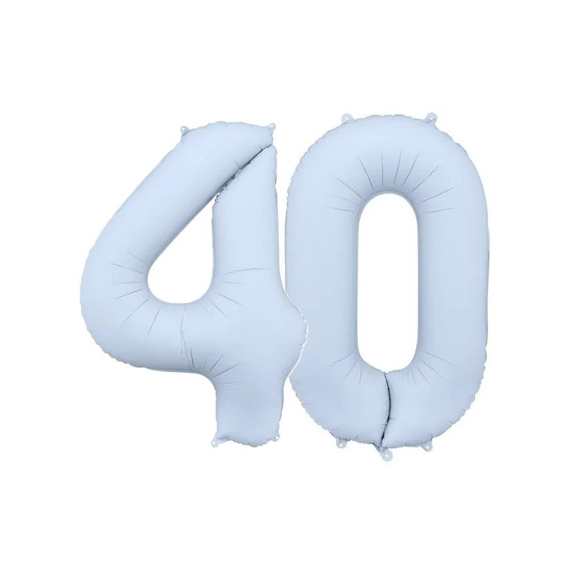 Balony foliowe w kształcie 40 w kolorze mglistym niebieskim.
