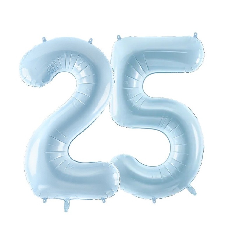 Balony foliowe w kształcie 25 w kolorze jasnoniebieskim.