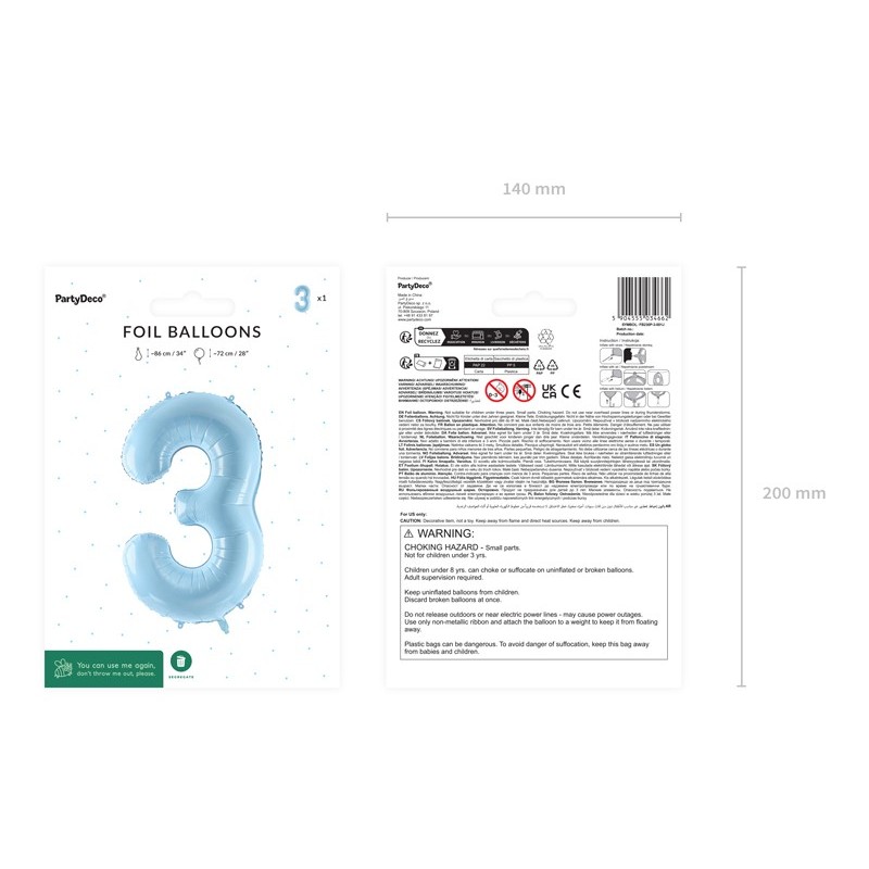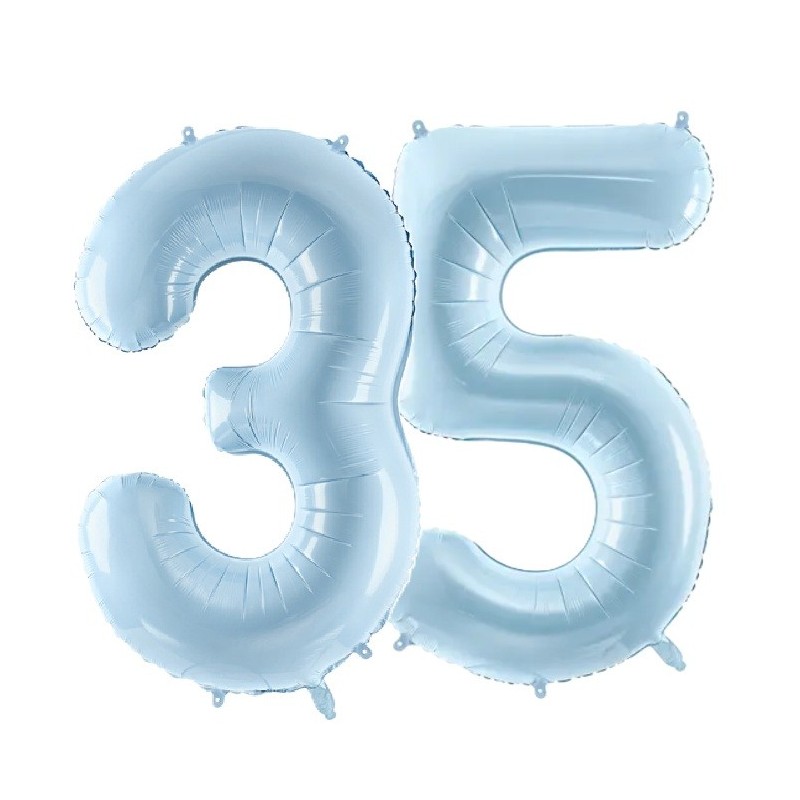 Balony foliowe w kształcie 35 w kolorze jasnoniebieskim.