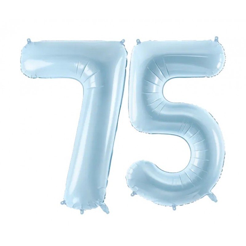 Balony foliowe w kształcie 75 w kolorze jasnoniebieskim.