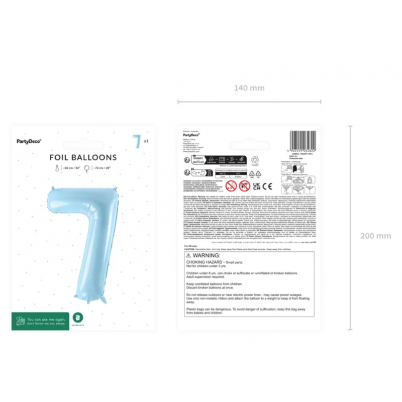 ⭐Balony foliowe Cyfra 75 - 72 cm - Jasny niebieski⭐