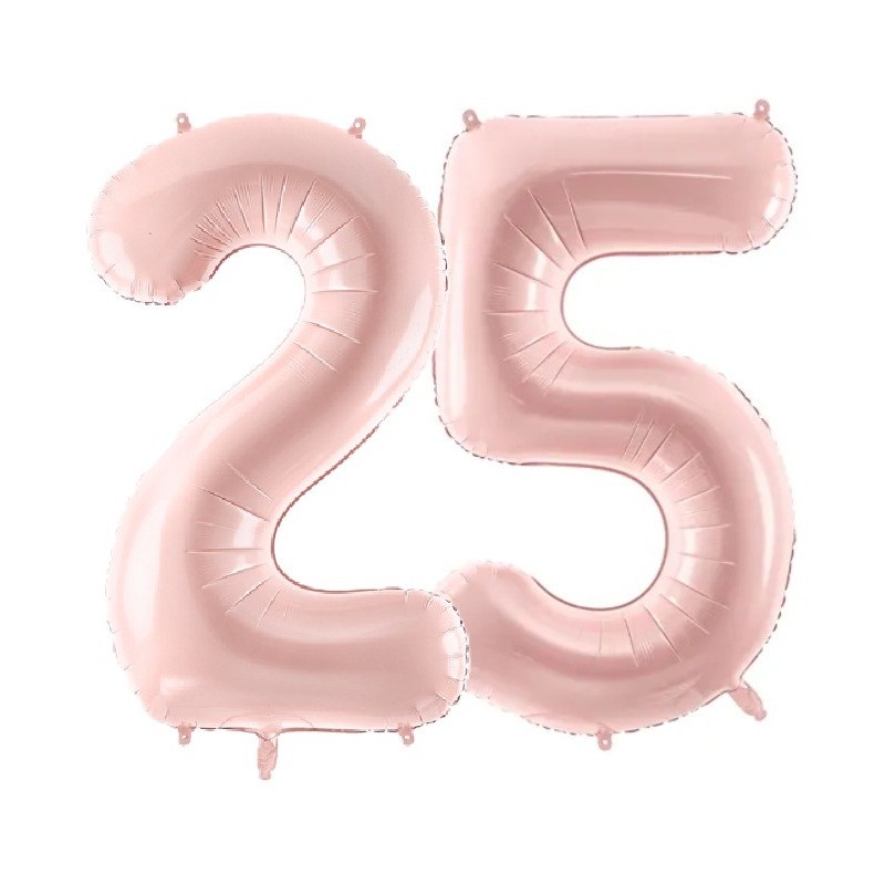 Balony foliowe w kształcie 25 w kolorze jasnoróżowym.