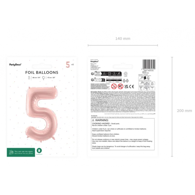 ⭐Balony foliowe Cyfra 25 - 72 cm - Jasny różowy⭐