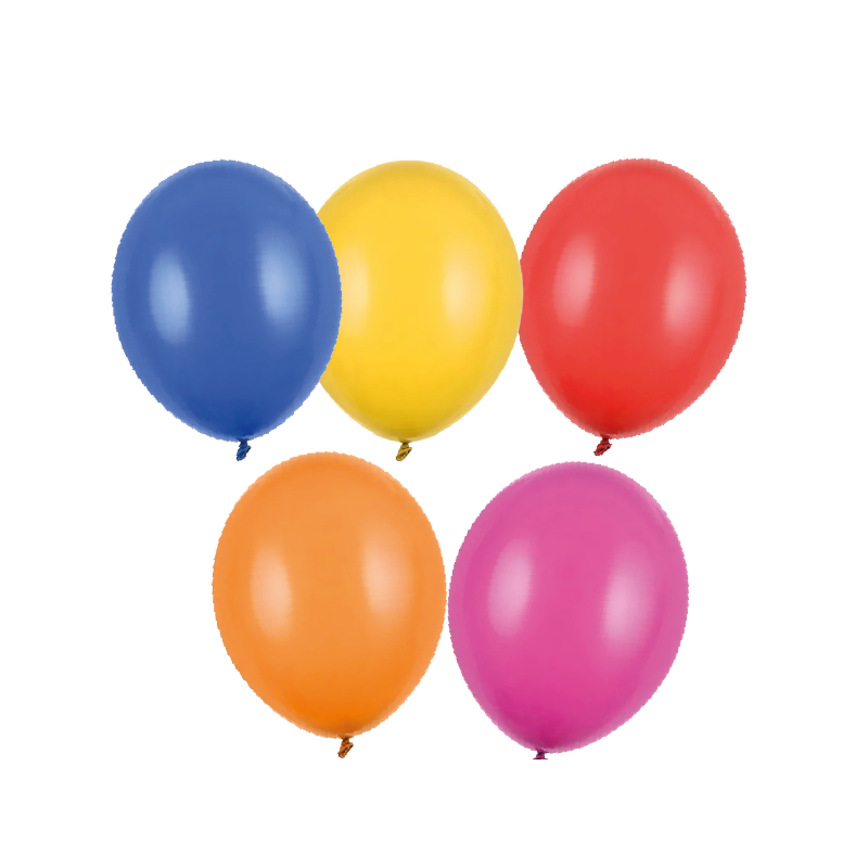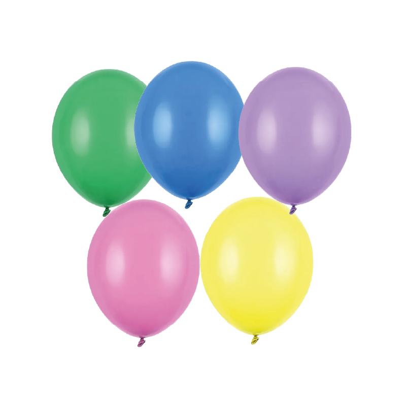 Zestaw 100 sztuk wysokiej jakości balonów lateksowych w jasnych pastelowych kolorach.