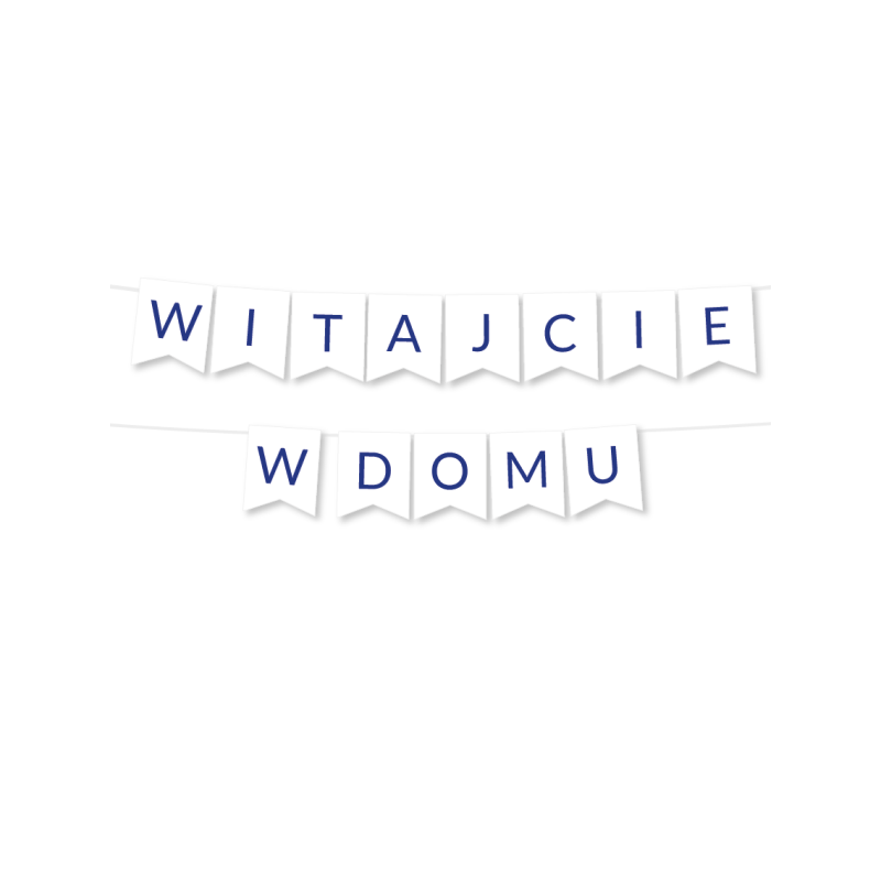 - girlanda "WITAJCIE W DOMU" o wysokości 16,8 cm, długość całej girlandy ok. 1,8 m.