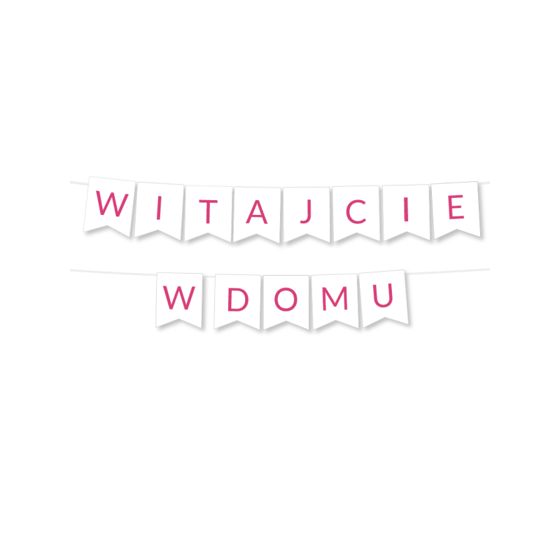 - girlanda "WITAJCIE W DOMU" o wysokości 16,8 cm, długość całej girlandy ok 1,8 m.