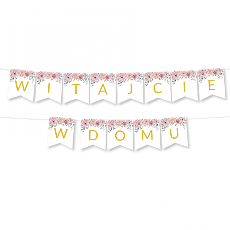 Box balonowy WITAJCIE W DOMU - kwiaty + różowy BOBAS