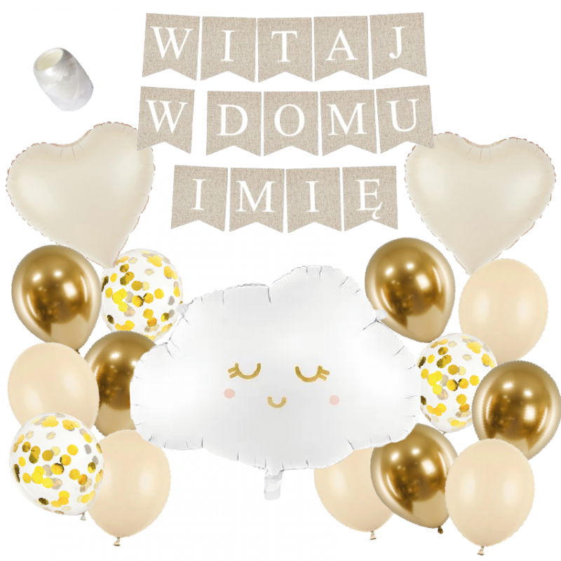 Box balonowy WITAJ W DOMU IMIĘ - boho + chmurka