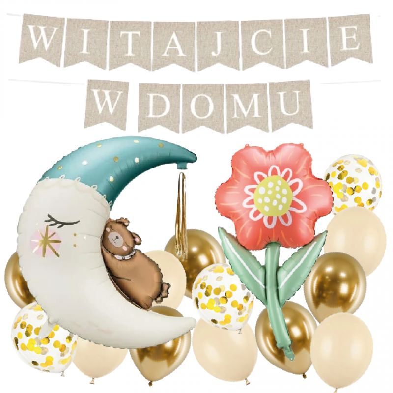 Box balonowy WITAJCIE W DOMU - boho + Księżyc niebieski + KWIAT DLA MAMY