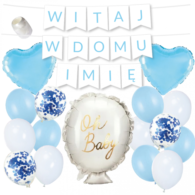 Box balonowy WITAJ W DOMU IMIĘ - jasny niebieski + balonik