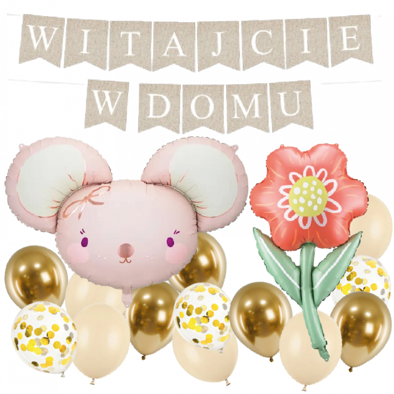 Box balonowy WITAJCIE W DOMU - boho + MYSZKA + KWIAT DLA MAMY