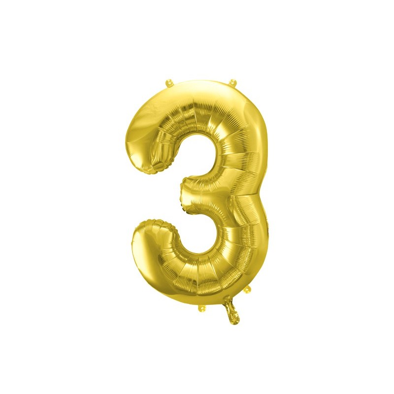⭐ balon foliowy - złota CYFRA 3 - ok. 72 cm (po napompowaniu)